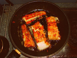Na patelni rozgrzewamy trochę oleju z łyżeczką masła, dajemy kawałek ryby grubemu kotu, zastanawiamy się nad kondycją świata i ludzkości w oczekiwaniu na stopienie tłuszczów. Następnie smażymy! Poczynając od strony pozbawionej skóry.